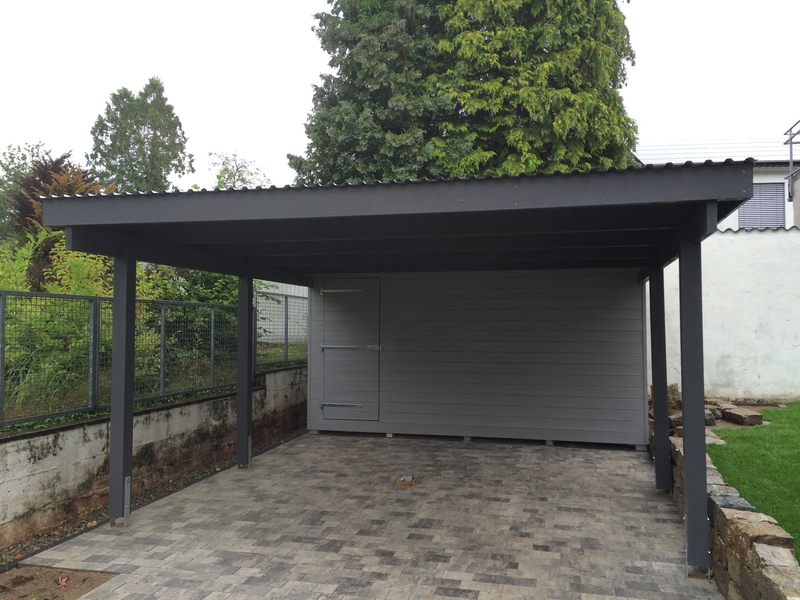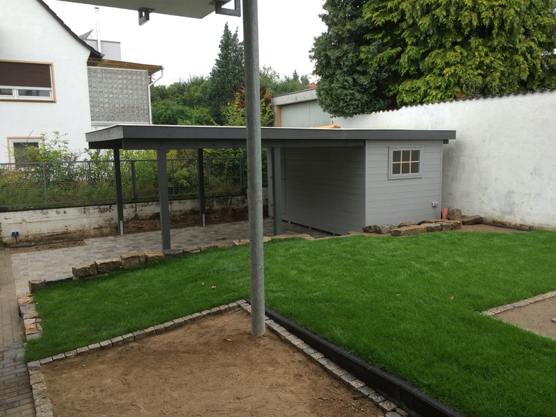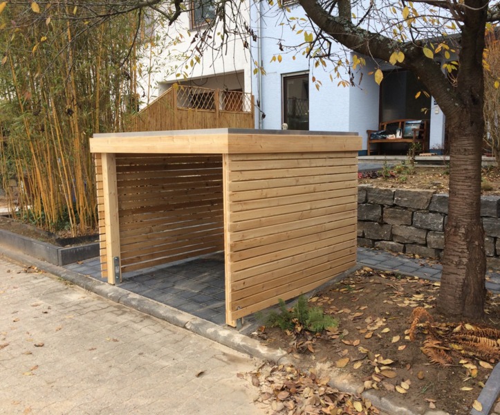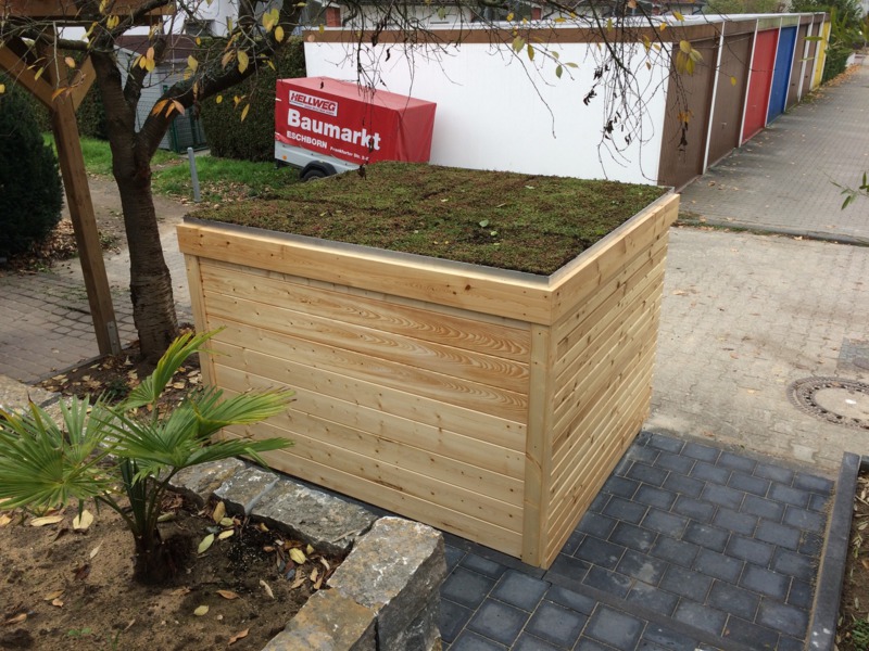 Mülltonnenüberdachung Doppelhaus mit Dachbegrünung