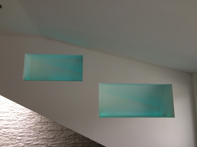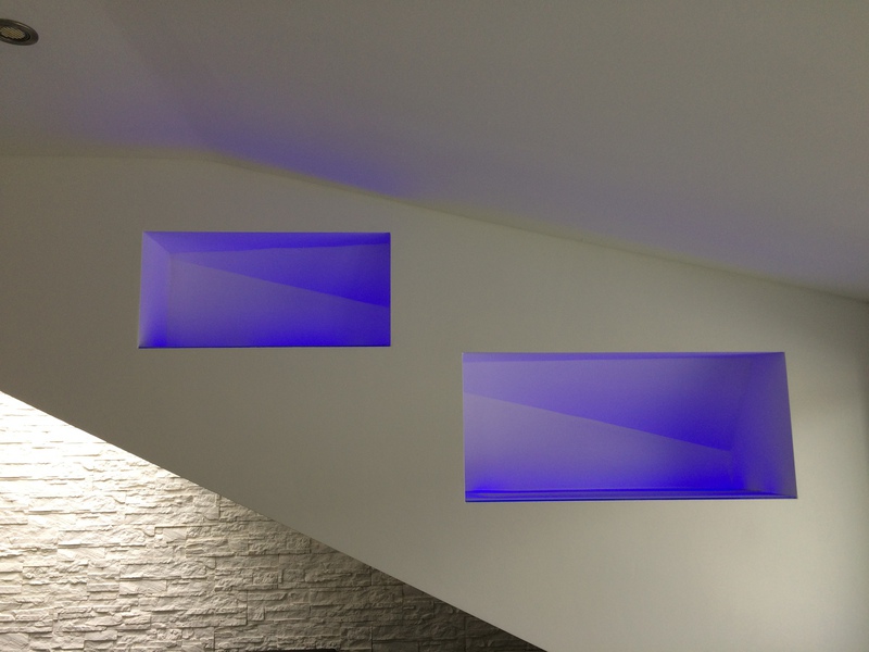 Wandverblendung mit Naturstein & LED Lichtkästen